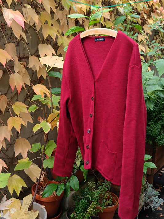 90s Wool Sweater| Vintage Heldmann Red Cardigan | Minimalist Women's Long Sleeved knit