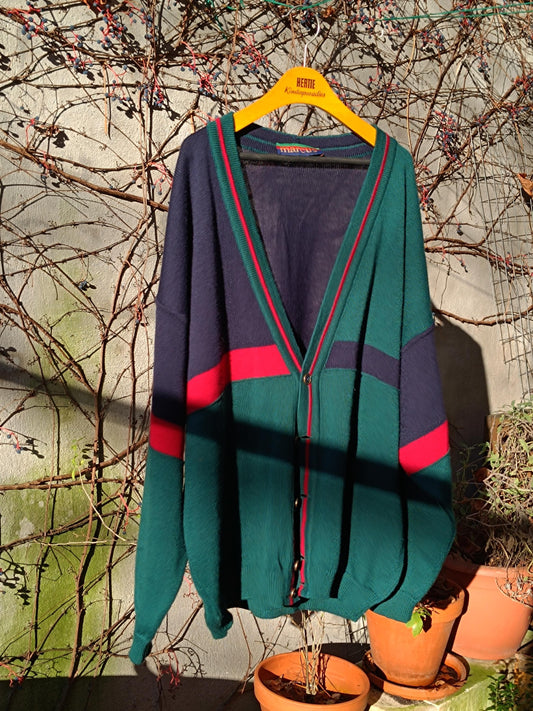 90s Collegiate Cardigan| Vintage Preppy Red and Green Long-sleeved knit
