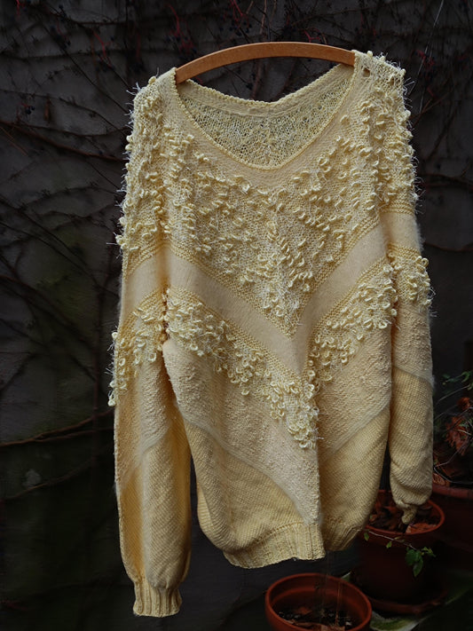 80s Fuzzy Yellow Sweater| Women's Winter Long Sleeved Knitwear| Statement Sweater with