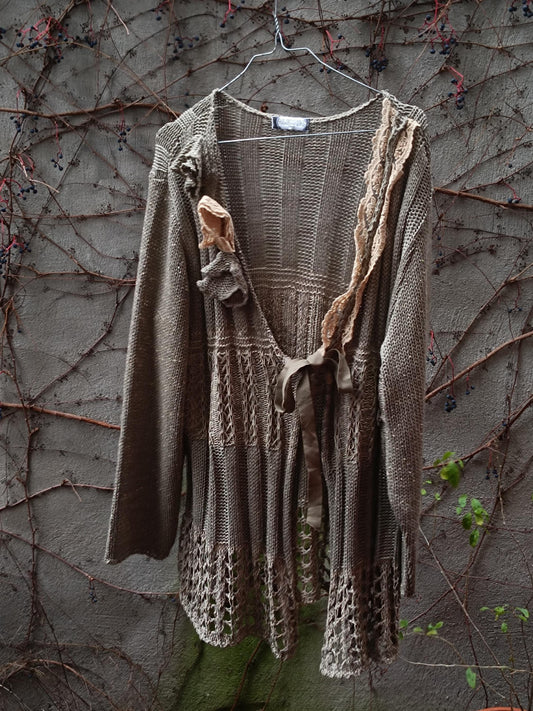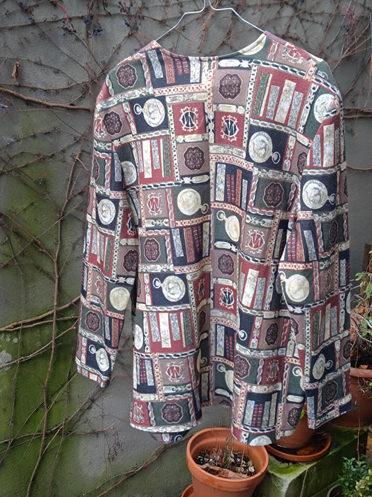 90s Library-Inspired Print Cardigan| Vintage Women's Maximalist Sweater in Brown