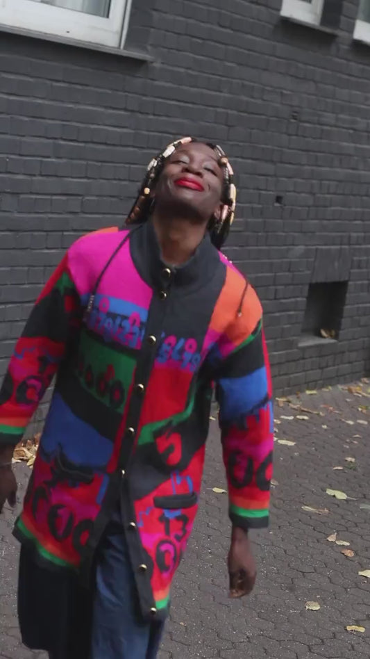 Vintage Rabe Knit Cardigan 80s 90s Sweater Dress Colorful Oversize Graphic Patchwork
