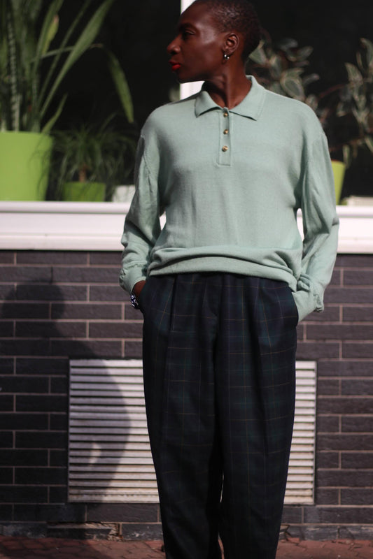 90s St Oliver Knitted Sweater| Vintage Unisex Green Jumper| Minimalist Collared Sweater| Purist Pullover Sweatshirt