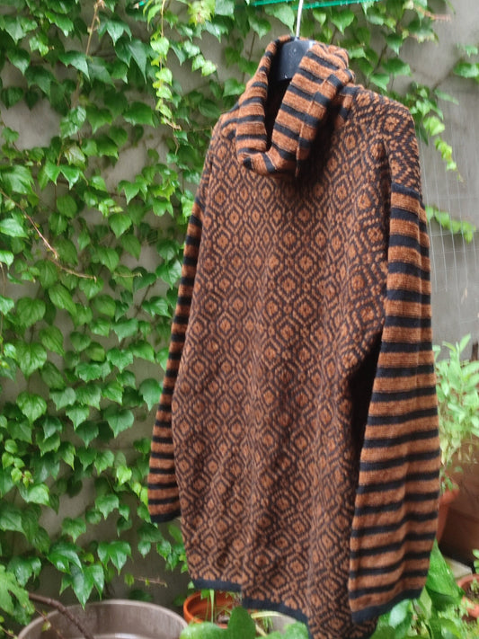 80s Kolor Knit Sweater| Vintage Women's Winter Knit| Irish Winter Sweater | Handknit long