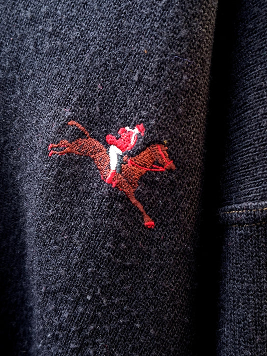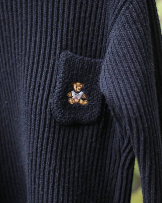 90s Navy Knit with teddy bear emblem | Vintage Minimalist winter sweater