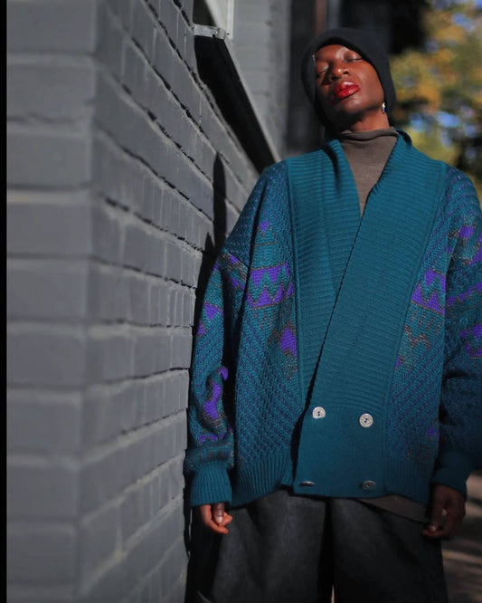 Vintage Purple and Blue oversized cardigan| Granddad inspired Sweater