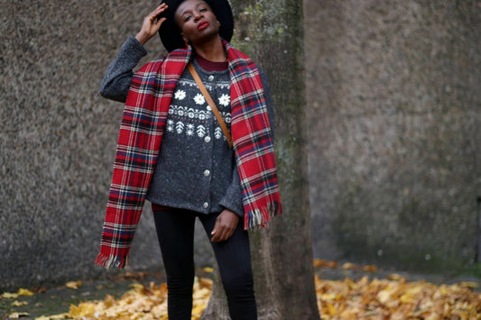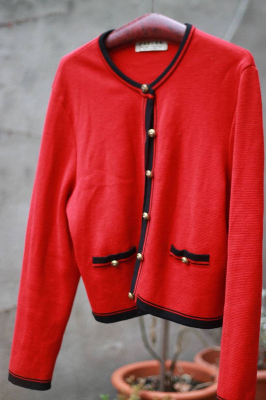 80s Jaeger wool sweater | Vintage red and black cardigan