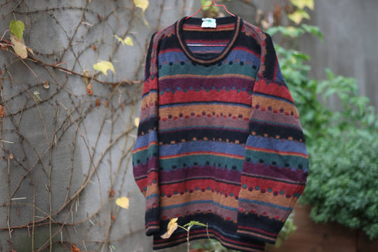90s Handknitted Winter Sweater| Vintage Wool blend Multicolored Sweater| Women's Scandi style Christmas knit