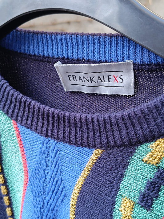 90s Frank Alexs Crazy Print Sweater| Vintage Blue Patterned Sweater| Women's Colorful Winter Knit| Cosby Style Men's Sweater