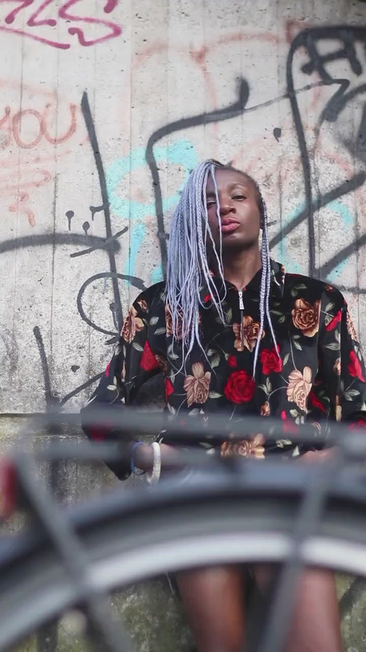 90s Floral Print Sweater| Vintage long sleeved sweatshirt with floral print and bling zipper streetwear
