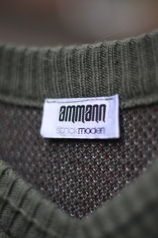 Ammann Strickmodem Green Knit with striped patterns| Vintage 90s long sleeved sweater with white and red details