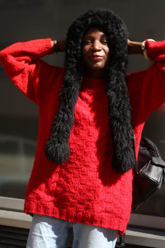 Handmade red sweater | Vintage long sleeved red knit | Minimalist winter jumper