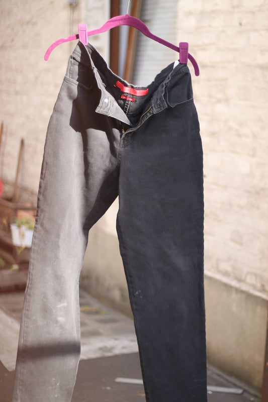 Zerres Stripped denim| 90s denim in grey and brown with statement zippers