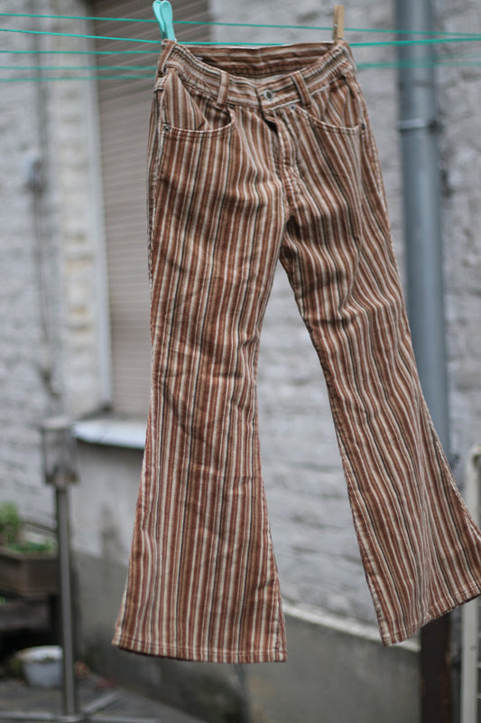 Striped three quarter length pants in brown Vintage Summer flared trousers