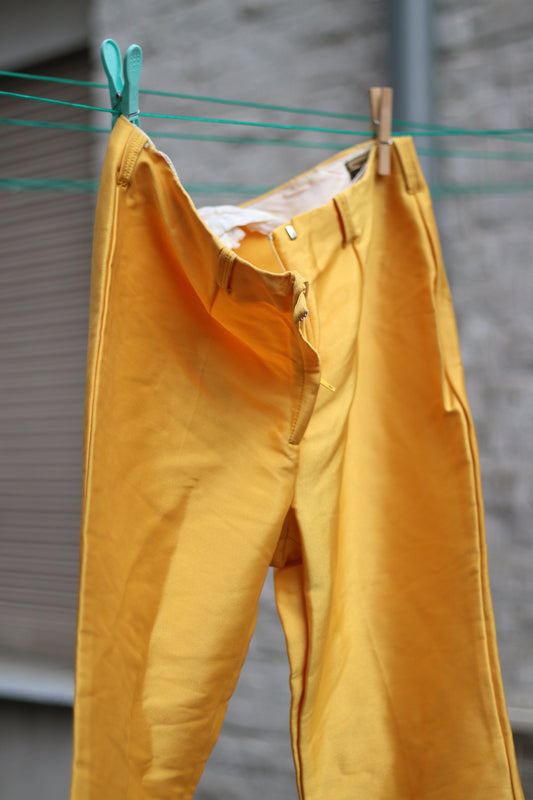 80s yellow shinny trousers| Vintage bright yellow statement Stirrup pants