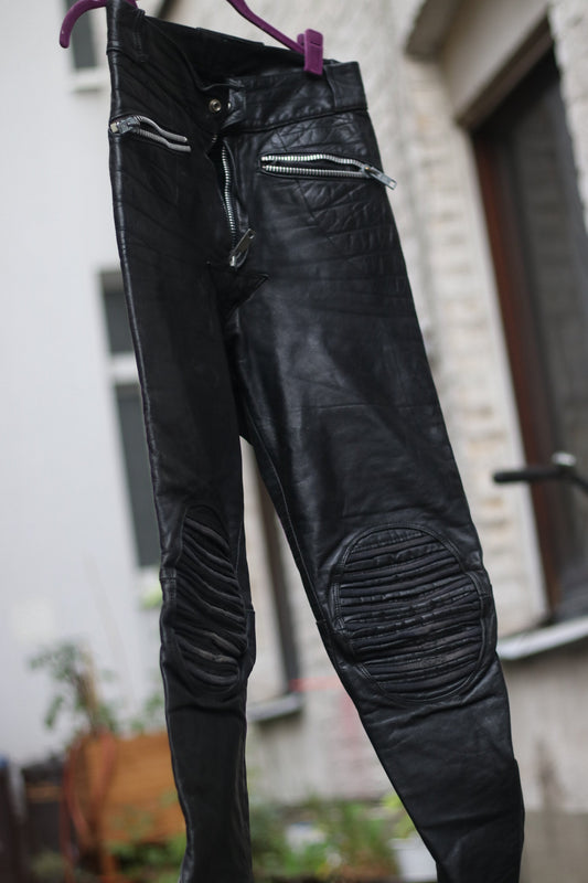 Vintage 90s Black Leather Biker Trousers with Zipper Details Size small to medium