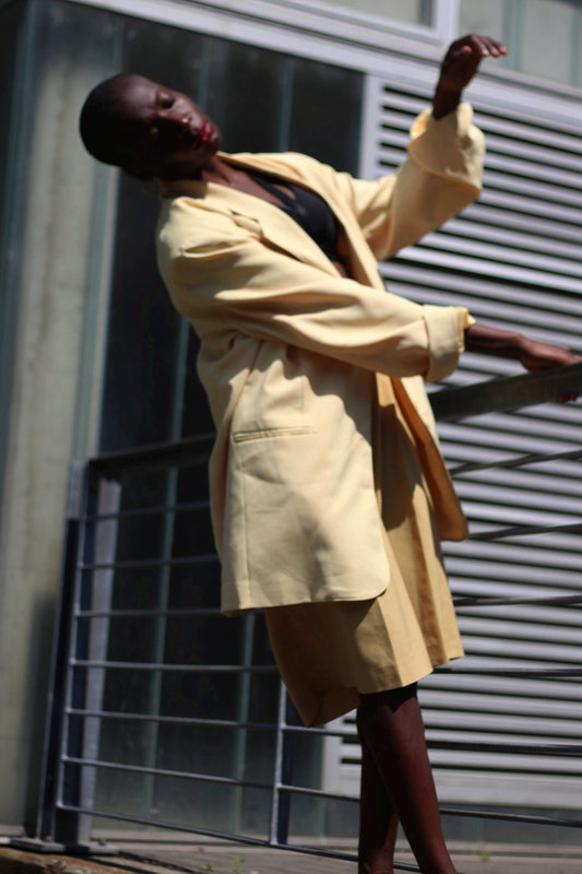 Vintage three-quarter length shorts| Minimalist light brown office wear design| 90s short trousers for summer