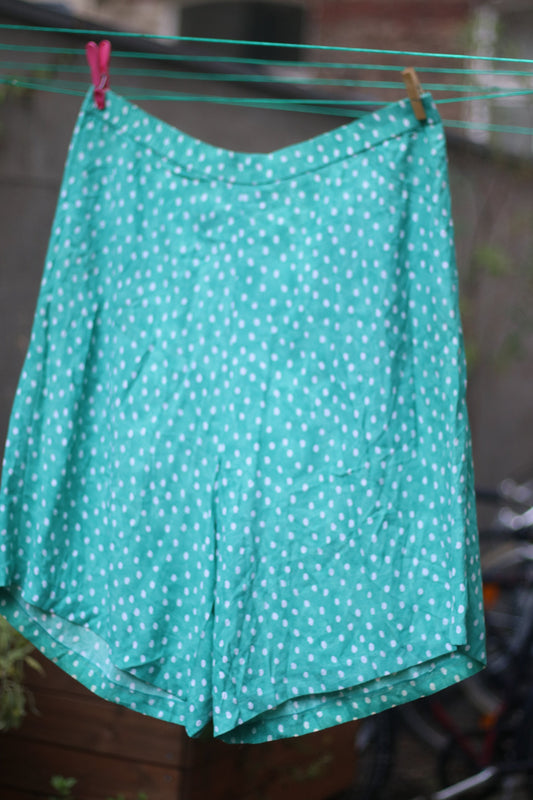 80s Patrizia S by Mondi Skortst |Green Polka Dotted Culottes Plus Size Summer Short