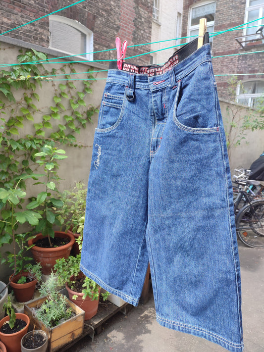y2k Here & there Denim culottes| Vintage blue denim shorts with closure and graphic print| Jeans culottes with print