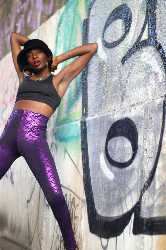 80s Purple Leggings with statement print Germany| Vintage maximalist sporty leggings