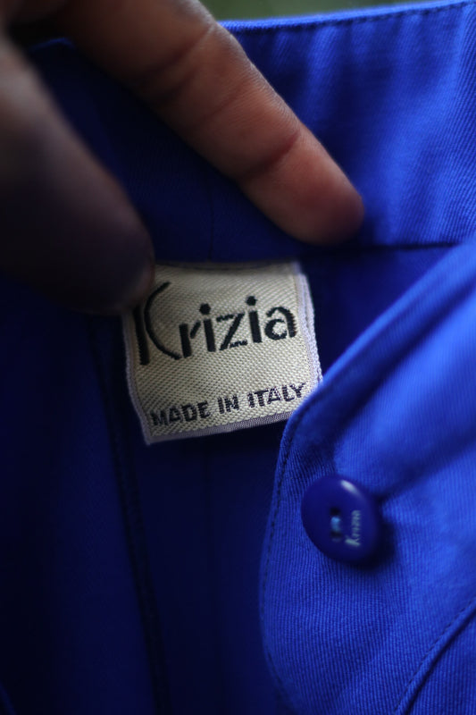80s Krizia Trousers| Vintage High waisted blue pants| Statement Tailored Wool Pants| Minimalist Workwear Design