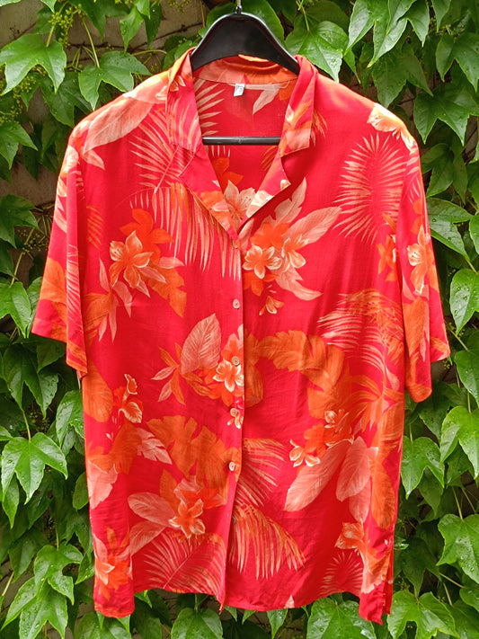 90s Tropical print Shirt| Vintage Unisex Floral Print Summer blouse| Maximalist red Beachwear Holiday wardrobe