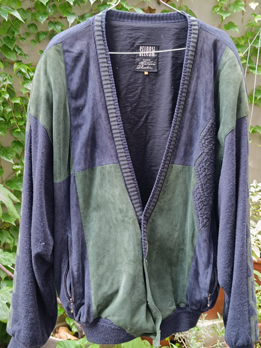 90s seldom by Fransisco Martin Cardigan| Vintage women's leather mix Cardigan| Unisex crazy pattern print sporty knit