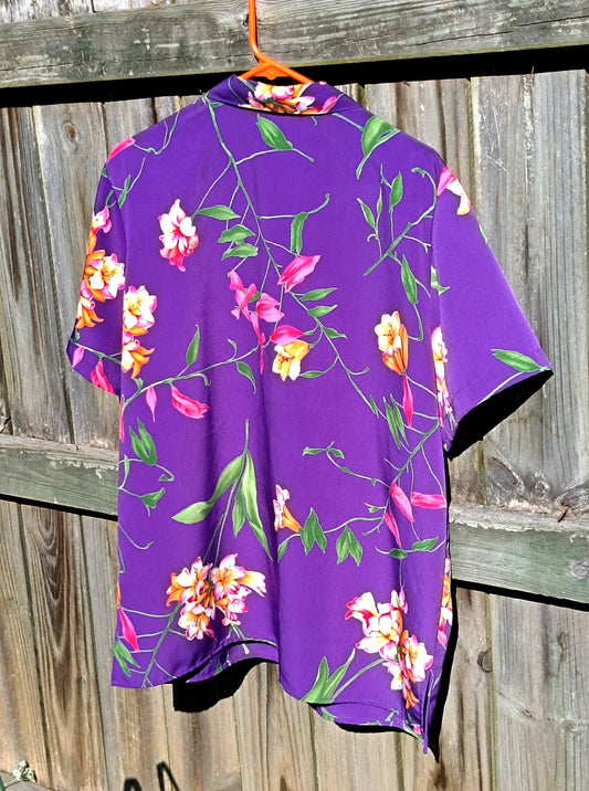 Vintage Caribbean Traders Shirt| 90s Tropical Blouse| Hawaiian-Inspired Shirt | Unisex Purple short sleeved shirt with floral print