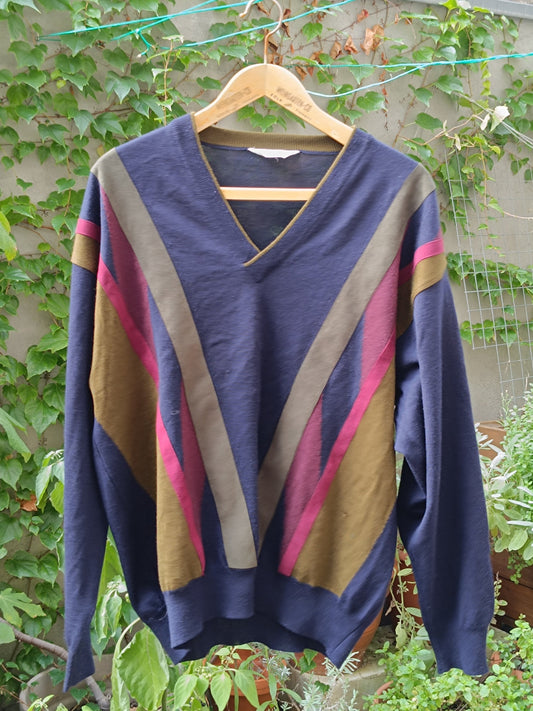 90s Masque sweater| Vintage Striped hipster multicolored knit| Unisex v neck| long sleeved sporty wool pullover