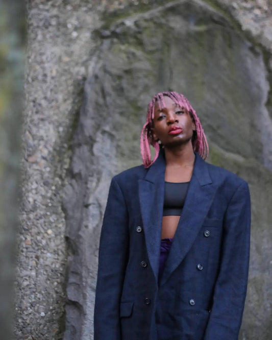 Vintage 70s Military inspired handmade jacket |Unisex Blue blazer with statement red details by sleev