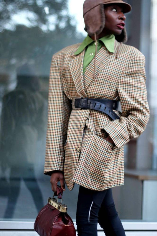90s unisex checkered brown blazer| Vintage oversized minimalist blazer
