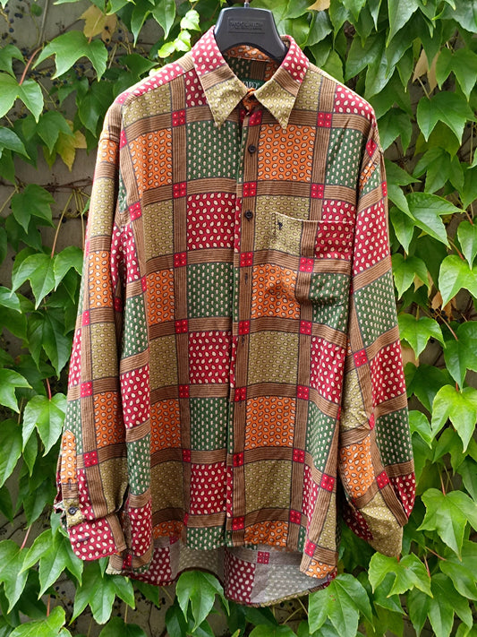 80s Soleiado Patchwork Shirt| Vintage unisex crazy patterned shirt| Hippy inspired brown blouse
