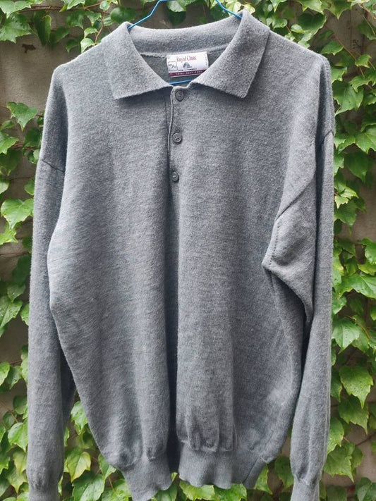 90s Grey Sweater| Vintage Minimalist Long Sleeved Jumper| Purist unisex collared winter knit
