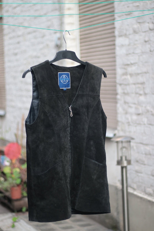 Vintage Street One 90s Suede Vest or Mini Dress in Black size
