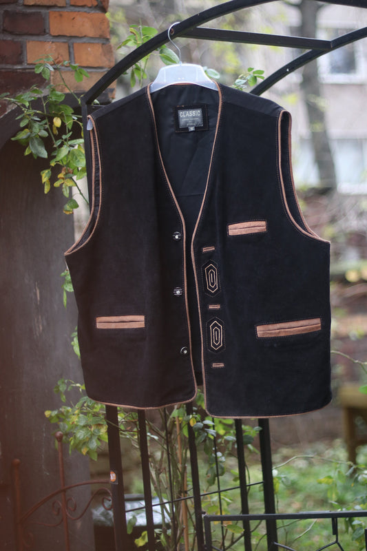 90s Black Suede Vest| Vintage mix media bohemian vest | Classic Leather vest
