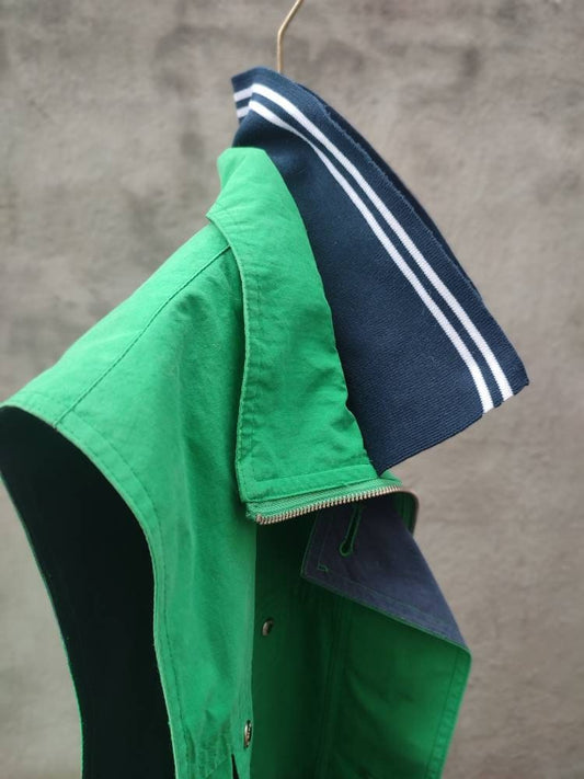 90s Sporty Vest| Vintage Green Unisex Vest with Striped Collar|Street style Hipster oversized atlethic sleeveless sweater