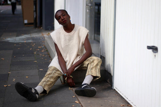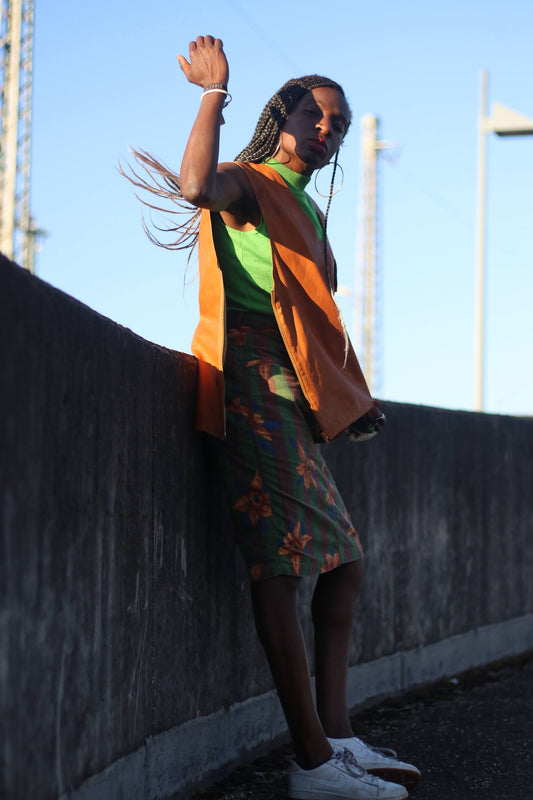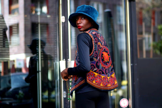 Vintage leather mix country chic vest | ke'ra ethno chic bohemian vest with abstract print