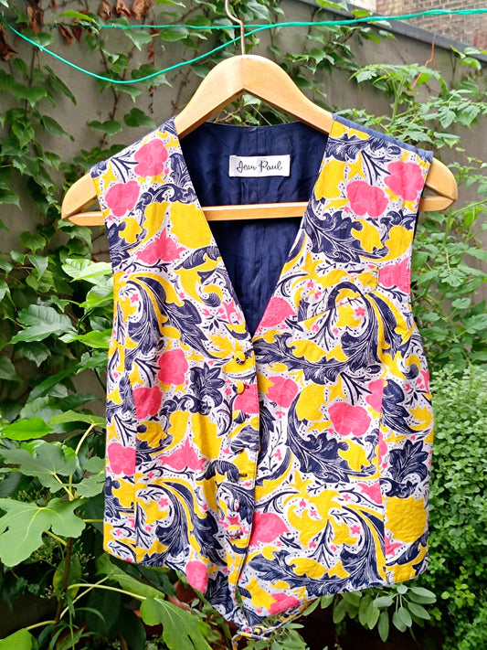 80s Jean Paul Vest| Vintage Colorful Yellow Vest| 80s crazy print vest| Maximalist Summer Festival Boho Design