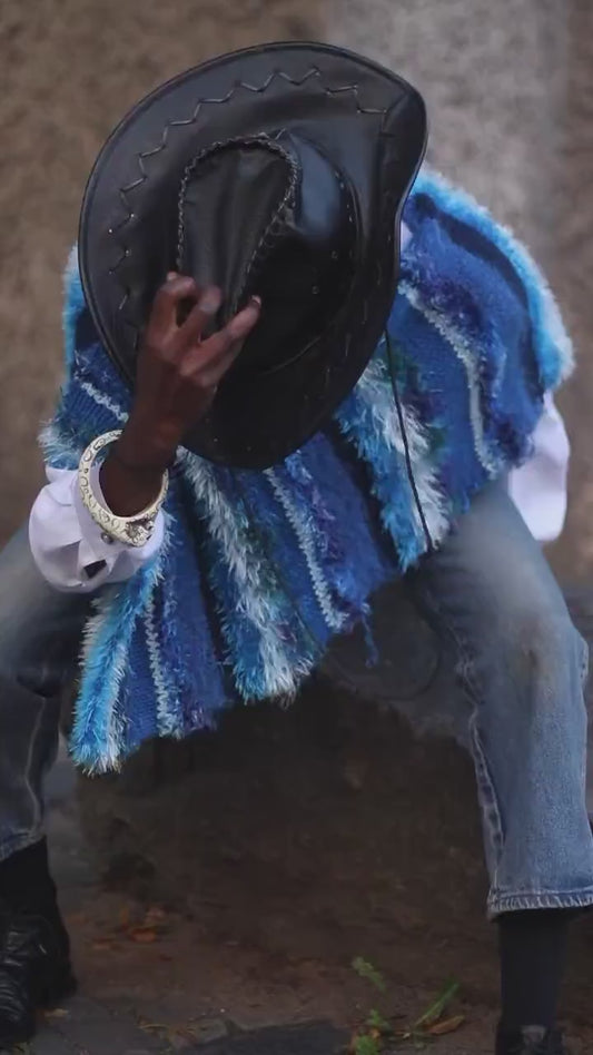 90s Textured Blue Poncho | Vintage Blue Shaggy Kitsch Poncho| Vest for her| Shaggy Winter Vest