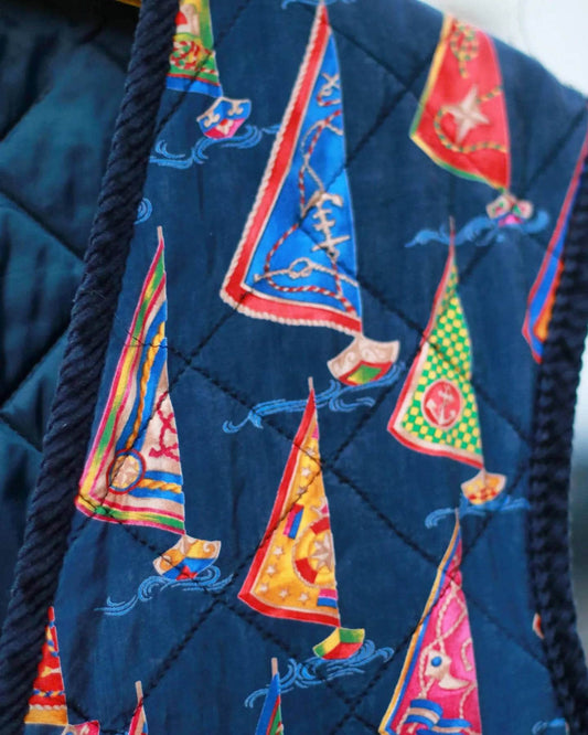 80s Casa Biana Italiana Vest | Vintage Maritime inspired quilted blue vest| Crazy pattern blue vest