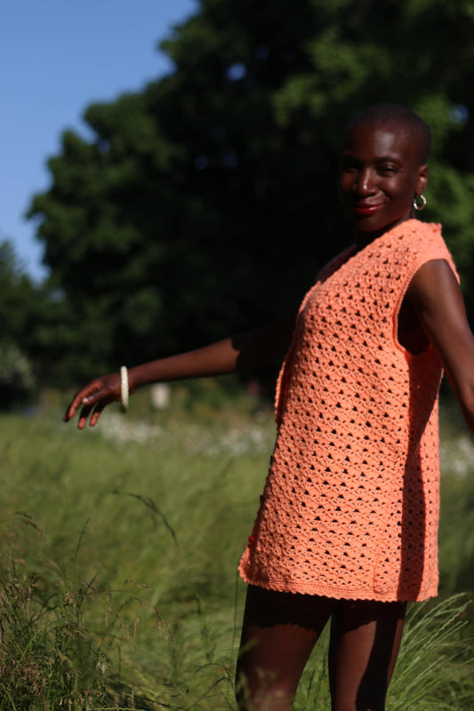 Handmade Orange Vest | Vintage Knitted Vest with buttons| Bohemian buttoned down design