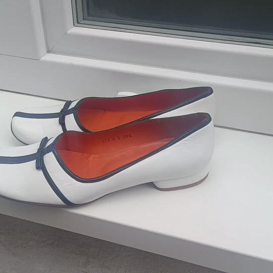 Audley Vintage Leather Shoes EU39.5| White Black Two Tone Striped Minimalist Flats