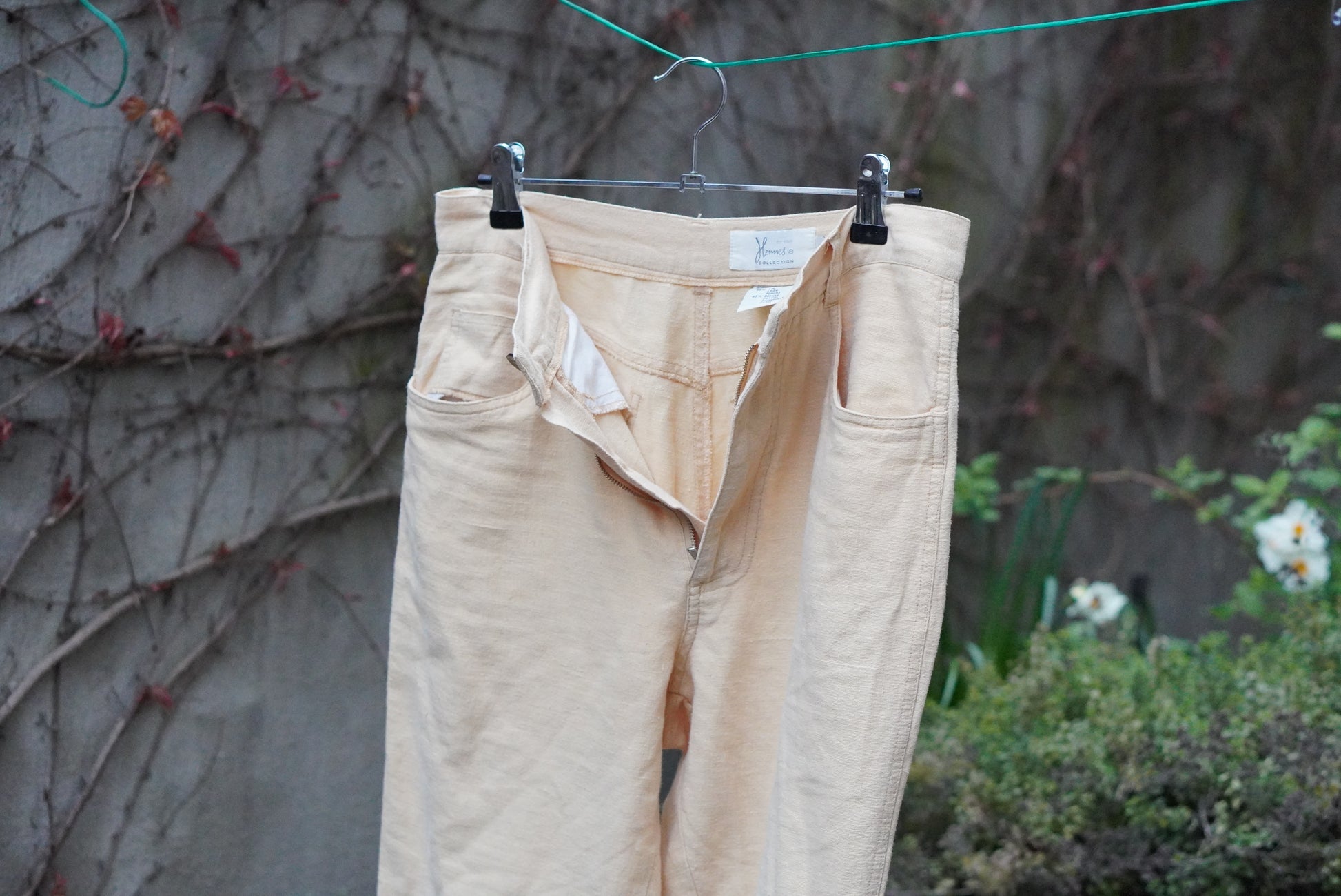 Vintage Hennes Collection High-Waisted Linen Cotton Trousers in Pale Yellow - Size 36